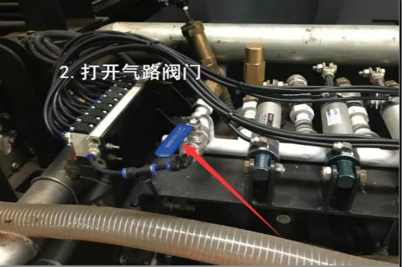 車尾操作盒輔助打開,然后打開藍色閥門,吹干后噴霧桿里面的水分